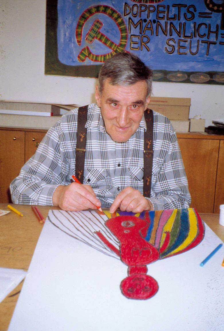 Unter den Gugginger Künstlern zählt Johann Hauser zu einem der international bekanntesten Vertretern der Art Brut. Schon sehr