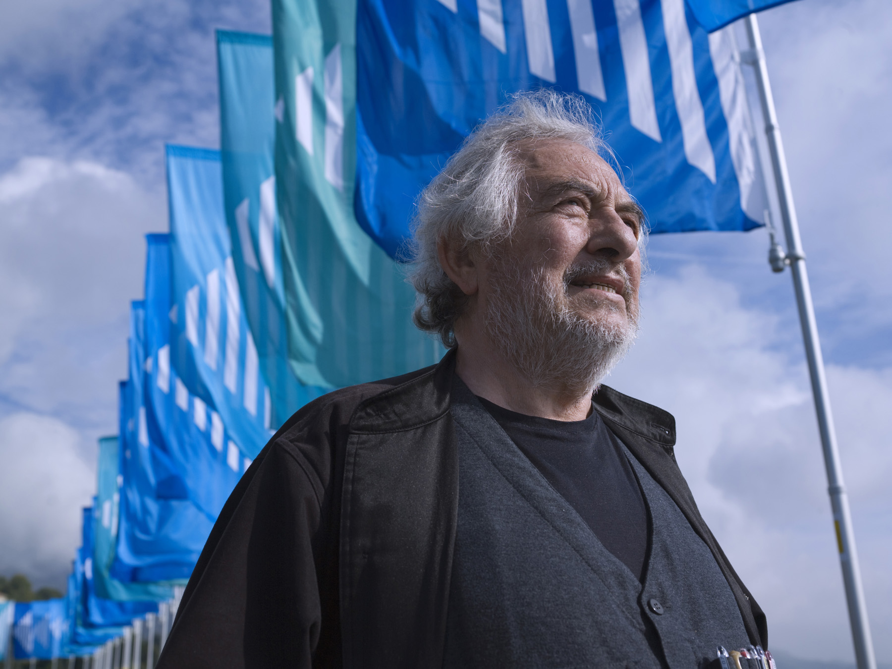 Daniel Buren vor seiner permanenten Installation der Fondazione Zegna, Trivero, Italien
